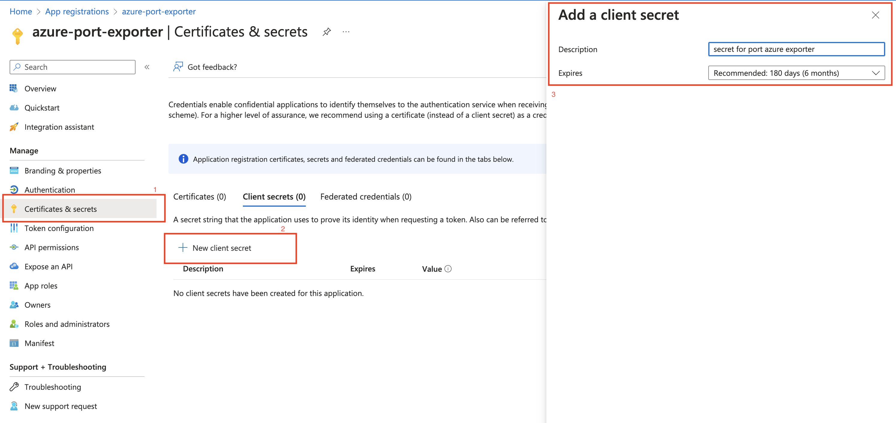 Create a client secret for the App Registration.